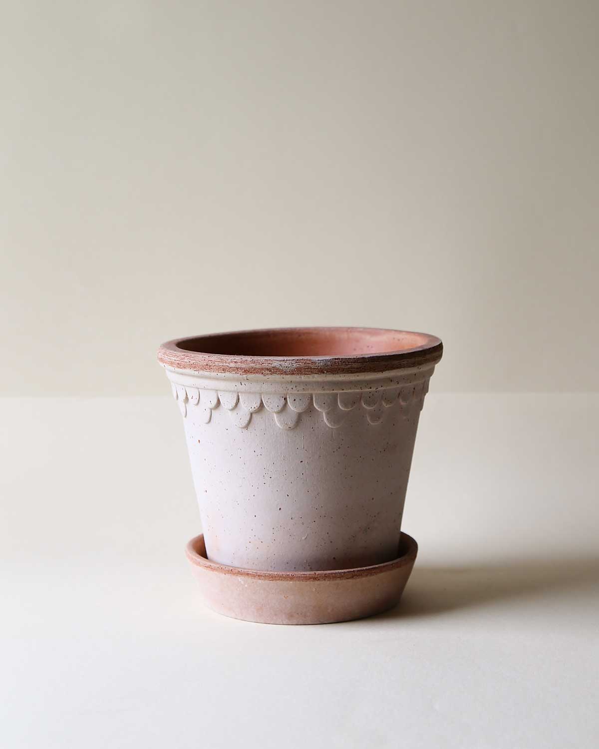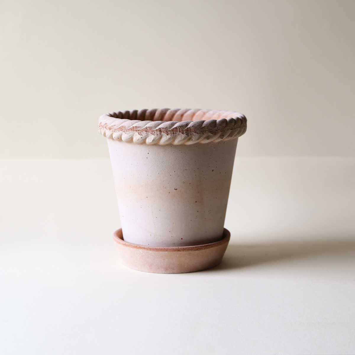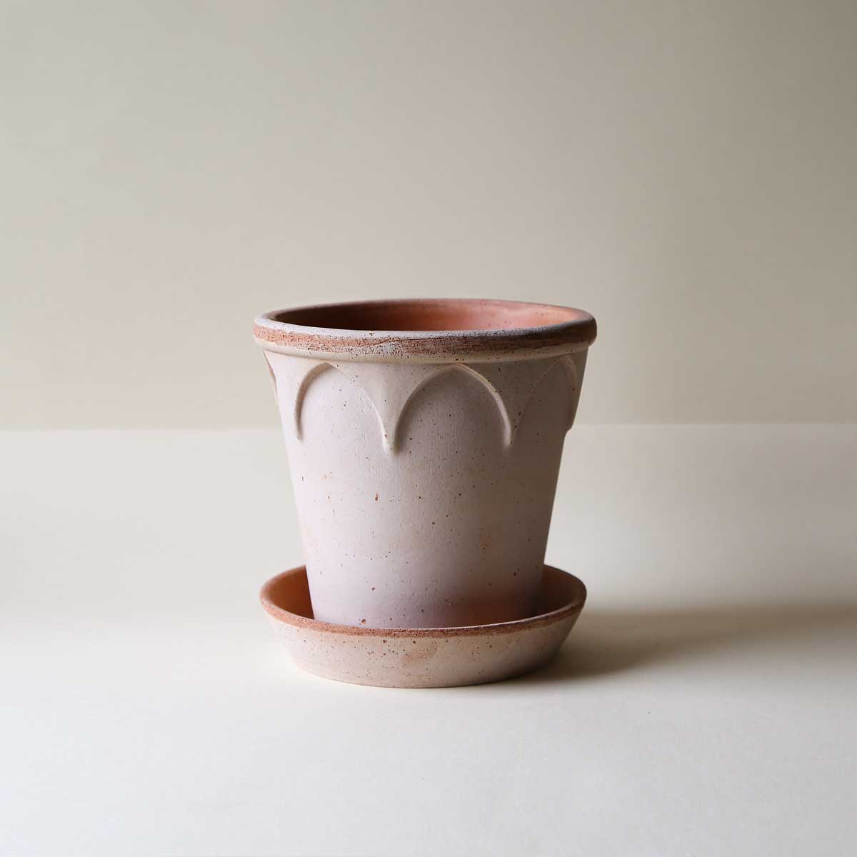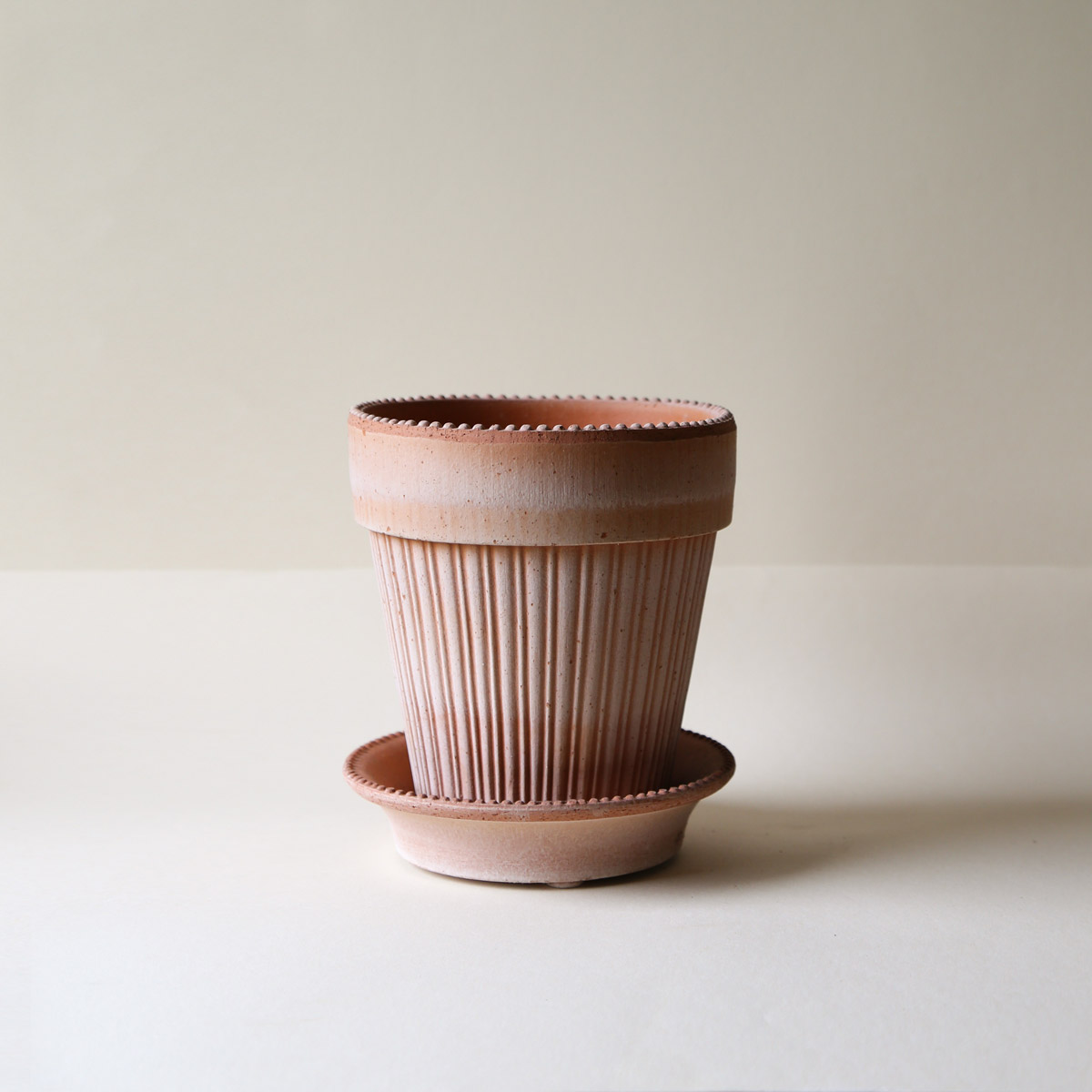 The softly ribbed Simona pot is a timeless favourite; delicate detailing combined with the breathability of natural terracotta.
