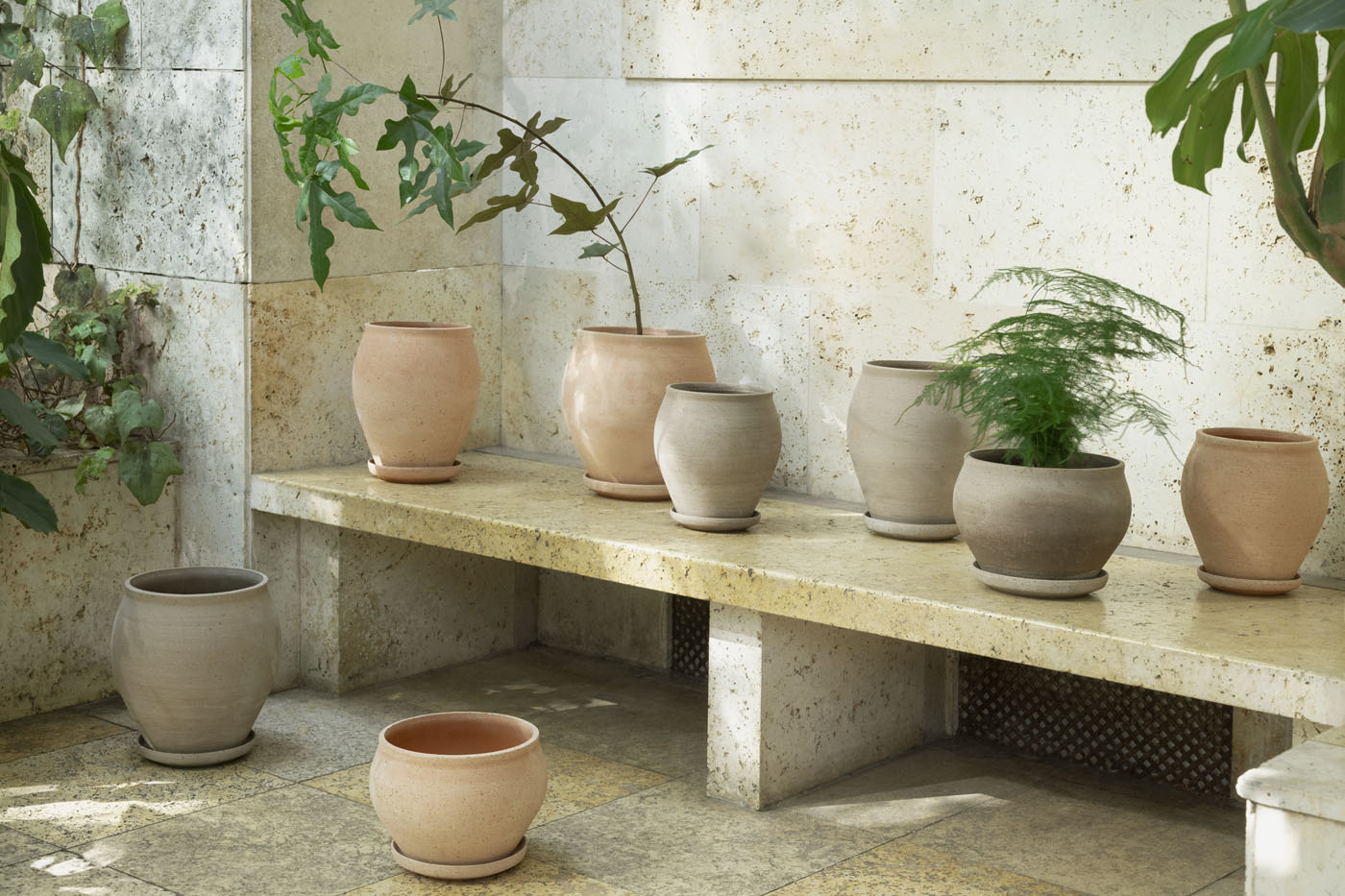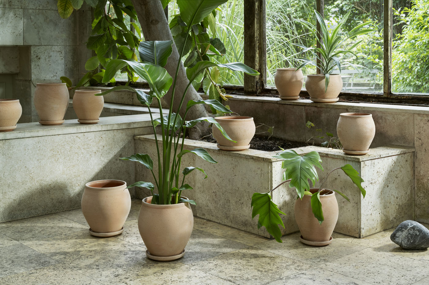 The low, wide-bodied Ø24 cm Delphi pots are crafted for both beauty and plant well-being.